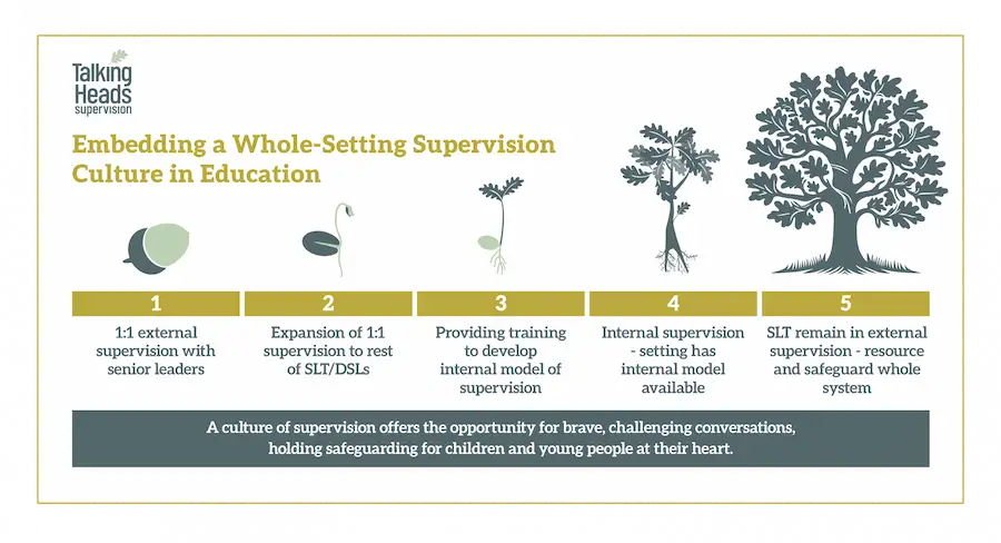 Talking Heads is the most experienced provider of supervision in education settings. We are at the forefront of maintaining best practices, integrity, safety, and relationships within supervision in education.